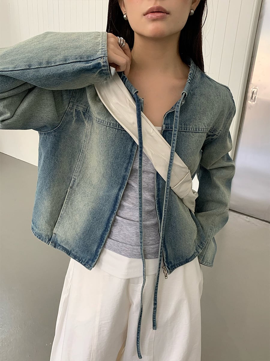 このデニムジャケットは、ユニークなレトロデザインと合わせやすいシルエットが特徴で、ボトムとの相性も抜群です。気軽に羽織ることができ、様々なシーンで活躍します。程よい厚みの生地は季節の変わり目にも適し、スタイリッシュな印象を与えてくれます。