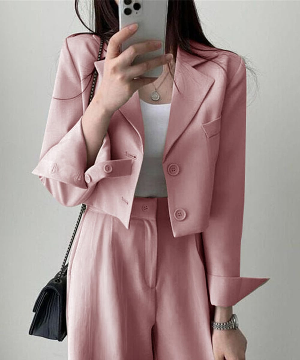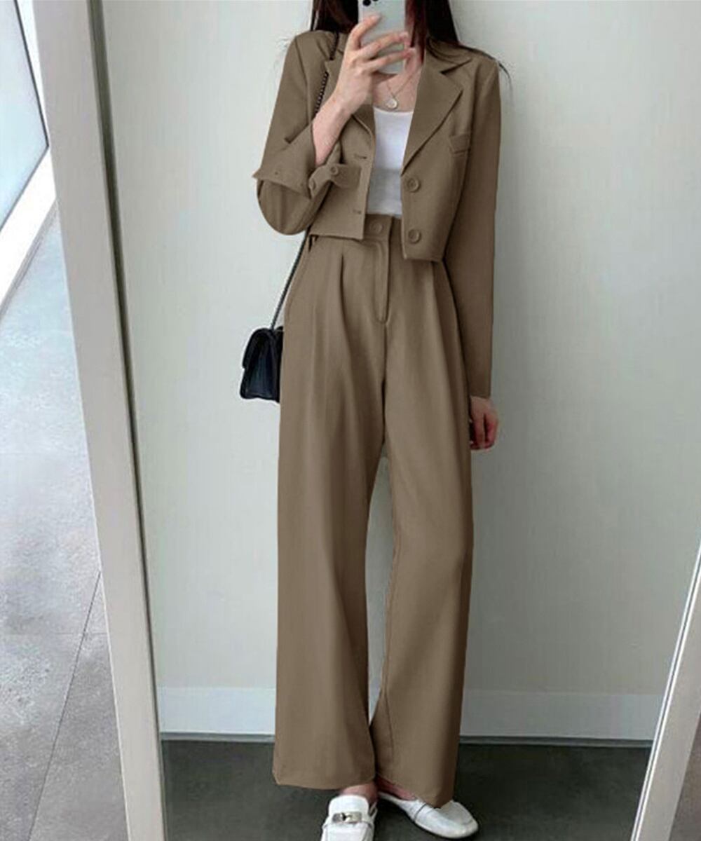 クロップドジャケット スーツワイドパンツ 春秋セットアップ オフィスカジュアル 20代30代40代 おしゃれフォーマル服