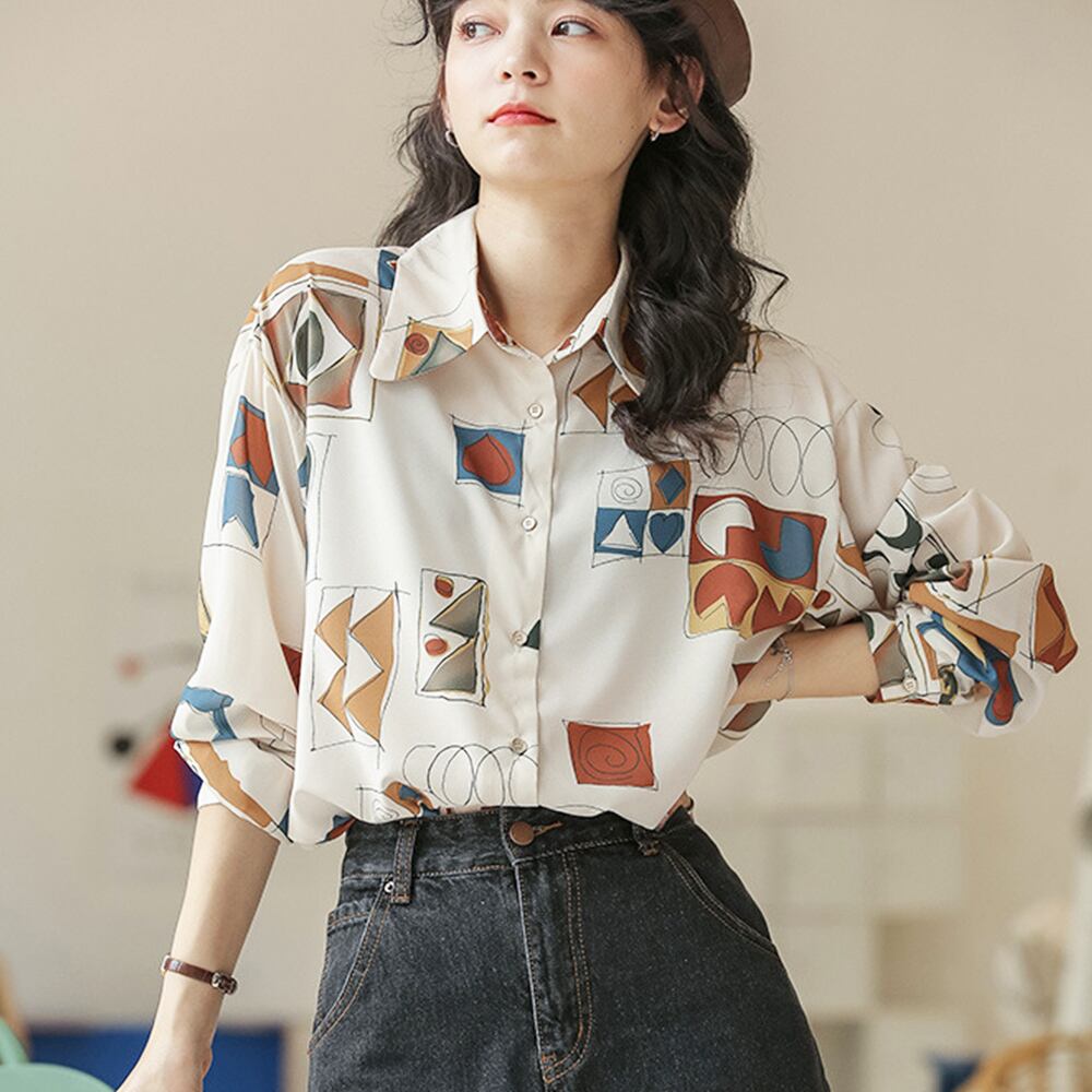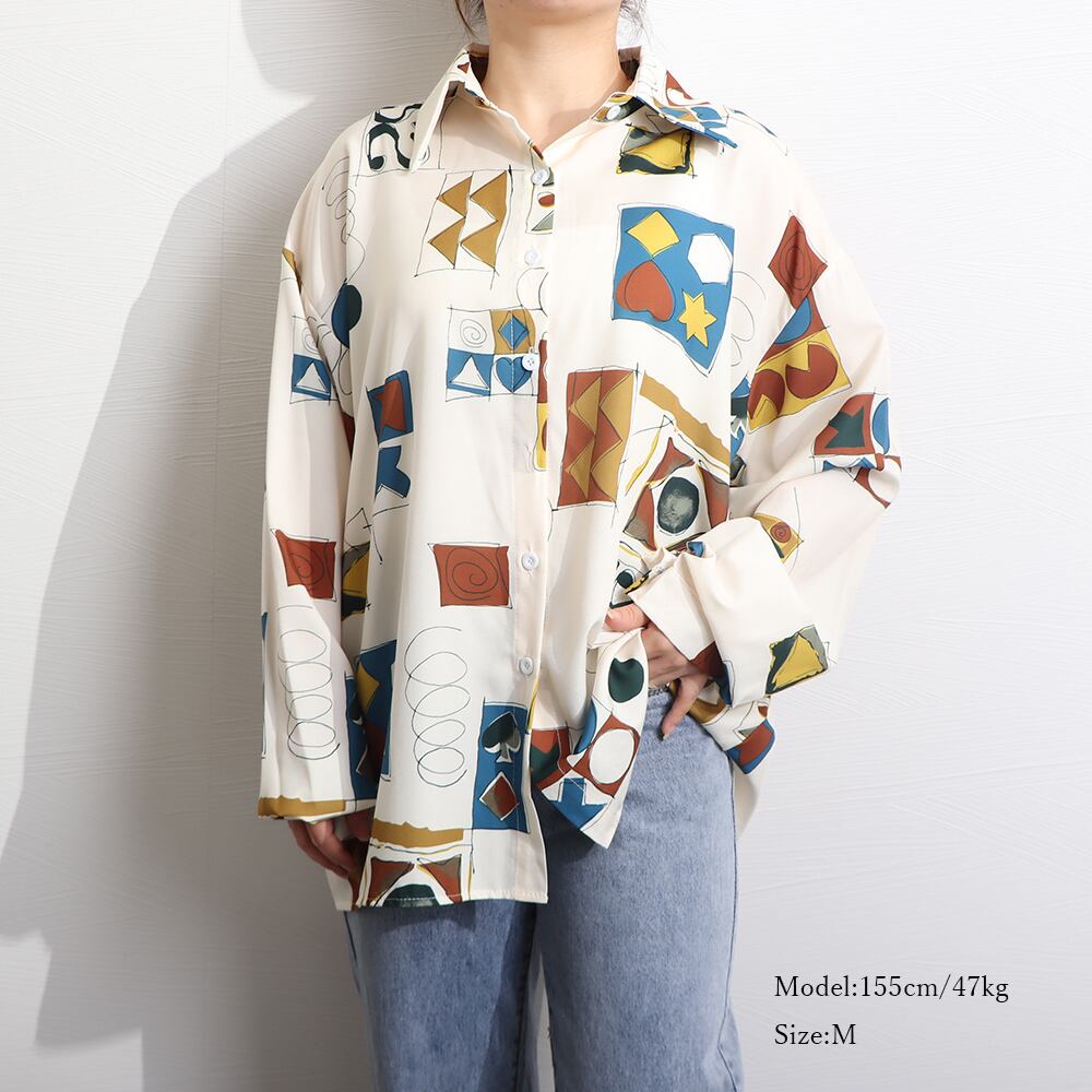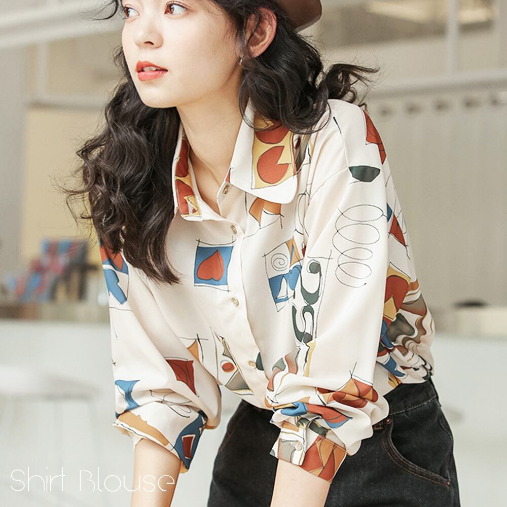 シャツブラウス プリントシャツ レディース ゆったり 長袖シャツ オシャレ 薄手 サラリ 肌触り良い 春秋 カラフル