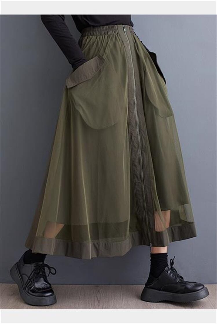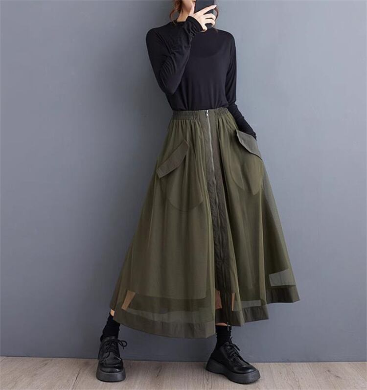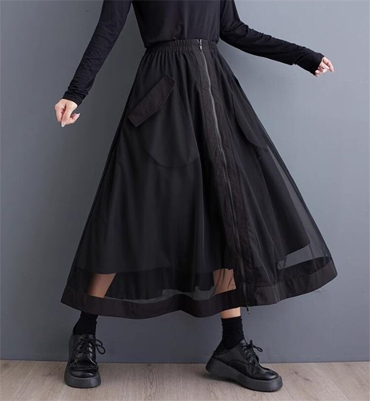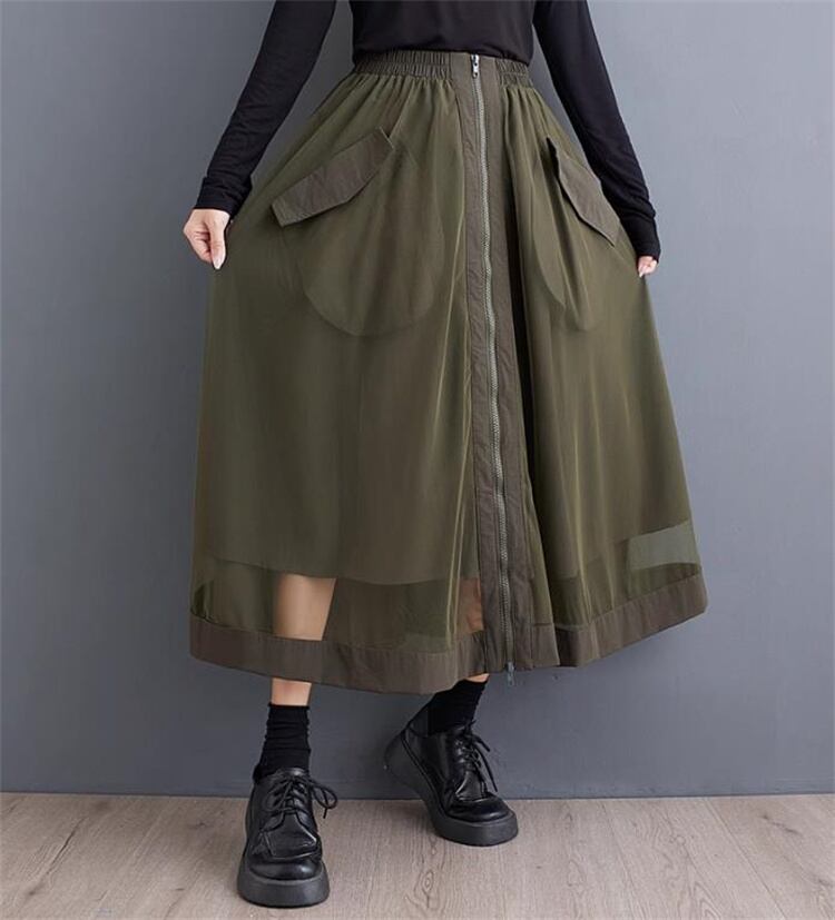 このロングスカートは、流れるようなレーヨン素材を使用しており、上品さと快適さを兼ね備えています。シンプルなジッパーデザインがポイントとなり、どんなスタイルにも合わせやすい一着です。