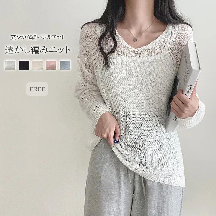 ・透け感のある爽やかな緩いシルエットの 透かし編みニットです。 ・タンクトップやキャミソールなどに重ねて着るだけで、今年っぽいレイヤードスタイルを楽しめます。