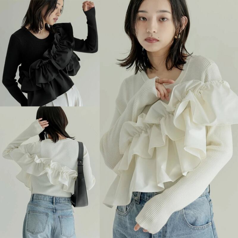 この機会にぜひ、異素材の魅力を持つニットトップスをお試しください!あなたのスタイルを引き立てる一着になること間違いなしです。