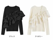 異素材デザインのニットトップスが入荷しました!このトップスは、さらっと1枚着るだけで、パッと華やかに見せてくれる優れものです。長袖だから、季節を問わず重宝し、シンプルながらも洗練された印象を与えるアイテムとなっています。