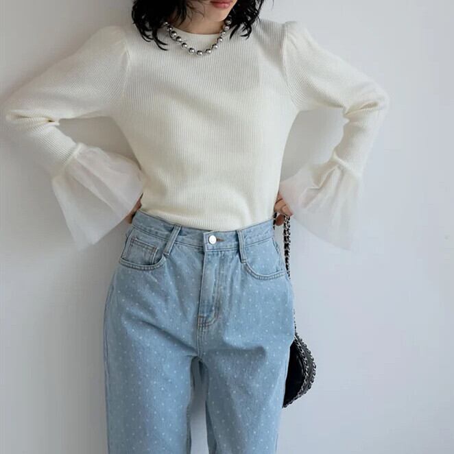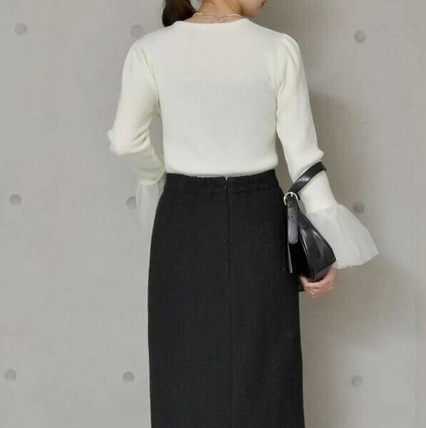 このトップスは、長袖スタイルで季節を問わず着用できるため、コーディネートの必須アイテムとなること間違いなし!かっちりしたジャケットにも、カジュアルなブルゾンにも、さらにはリラックス感漂うゆったりとしたパンツとも相性抜群です。シンプルだからこそ、レイヤリングを楽しんだり、アクセサリーでアレンジを加えたりと、多彩なスタイルを楽しむことができます。