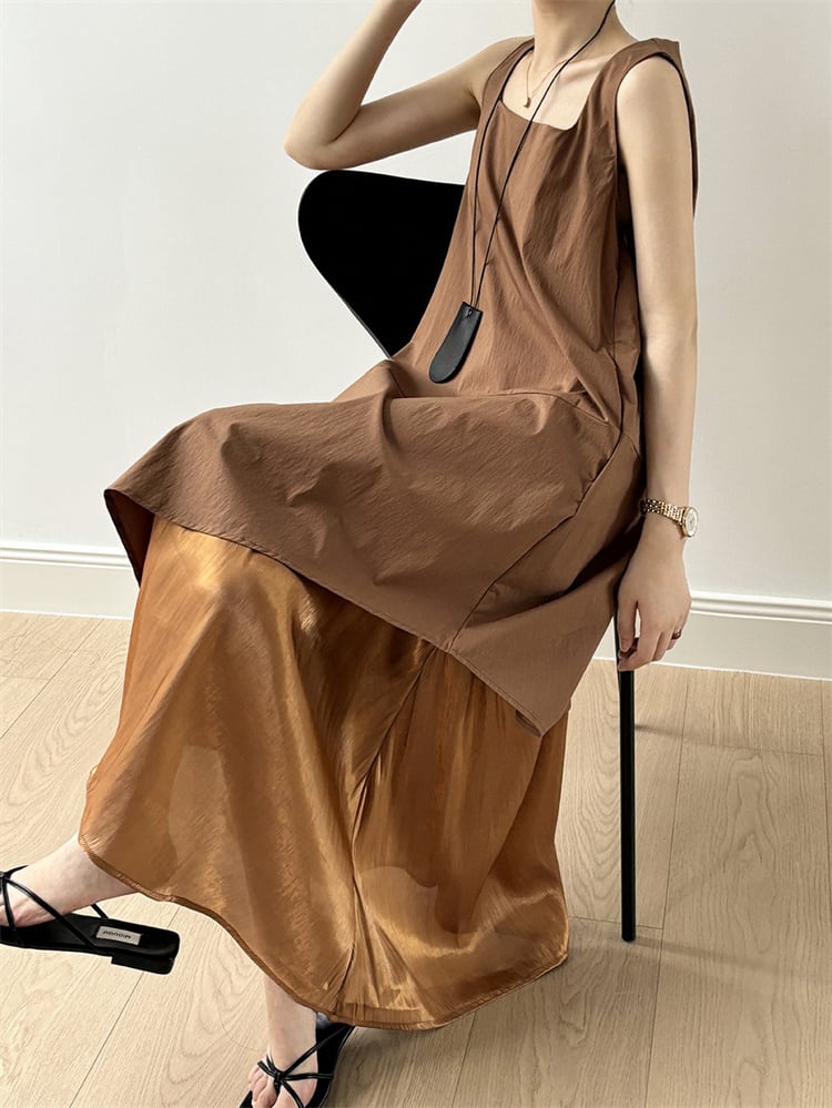 こちらは、トレンドのINSスタイルを取り入れたパッチワーク技法のジャンパースカート!不規則な裾処理がアクセントとなり、個性的でありながらも着こなしやすいデザインです。カジュアルなパンツと合わせてレイヤードスタイルを楽しめるアイテムで、お出かけやデイリーユースにぴったりです。