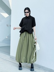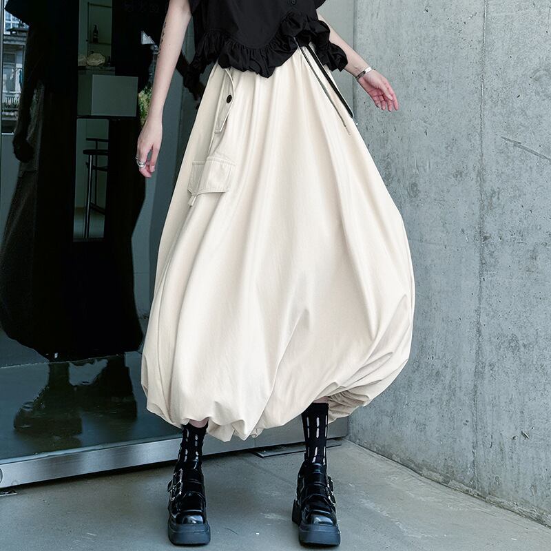 オン・オフ問わずに大活躍するこのロングスカートは、素材も柔らかく、動きやすさを重視したデザインです。あなたのワードローブにぜひ加えてみてください!