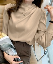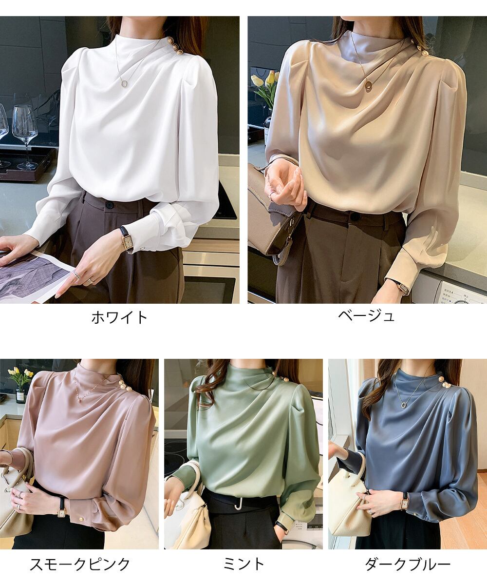 レディースタックブラウス オフィスカジュアルブラウス長袖 フェミニンブラウス とろみブラウスおしゃれ 大人可愛いトップス
