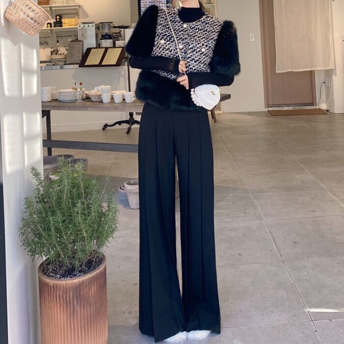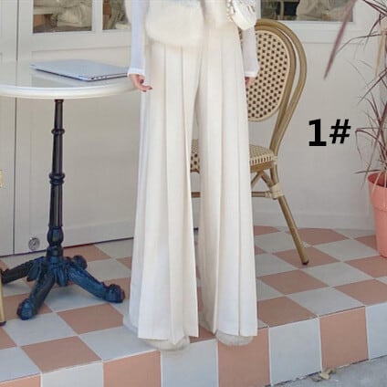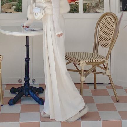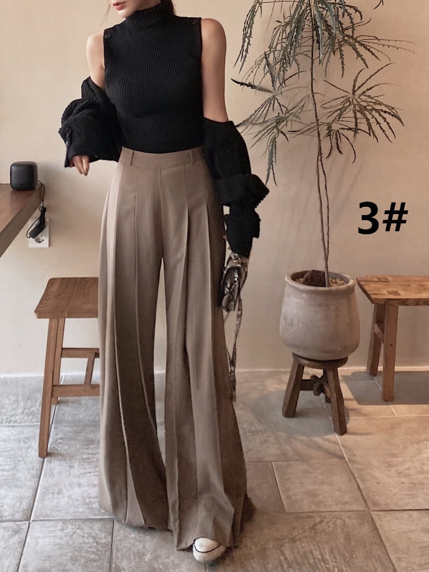 美しいシルエットが魅力のワイドパンツ。