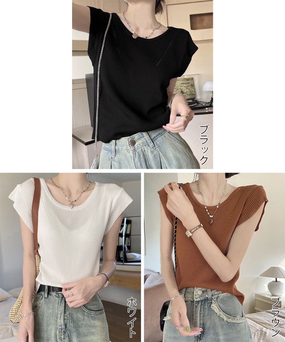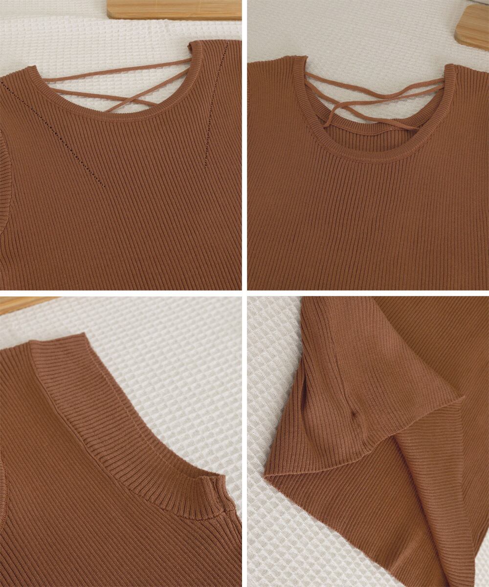 レディース ニットトップス バッククロス 春夏トップス 丸首 着回し ニットソー プルオーバー おしゃれ カジュアル