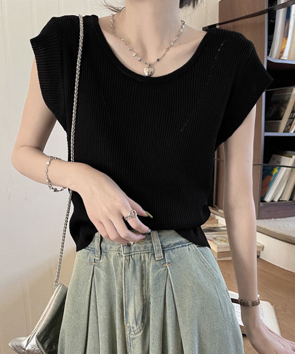 程よく女性らしさを感じさせるクルーネックのサマーニット